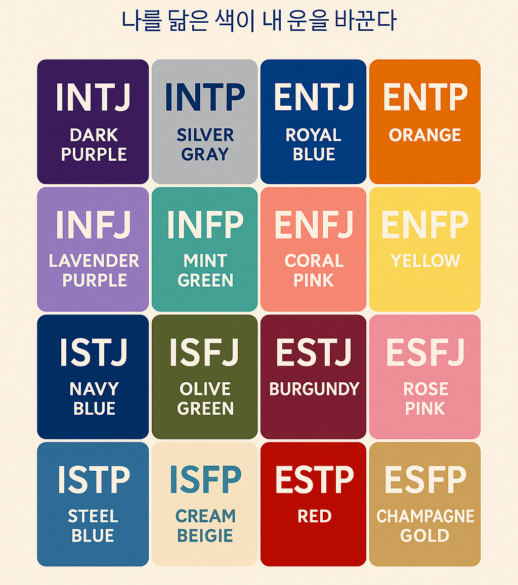 자신의 MBTI에 맞는 색을 활용하면 집중력·감정 밸런스·행운이 한층 높아져요!